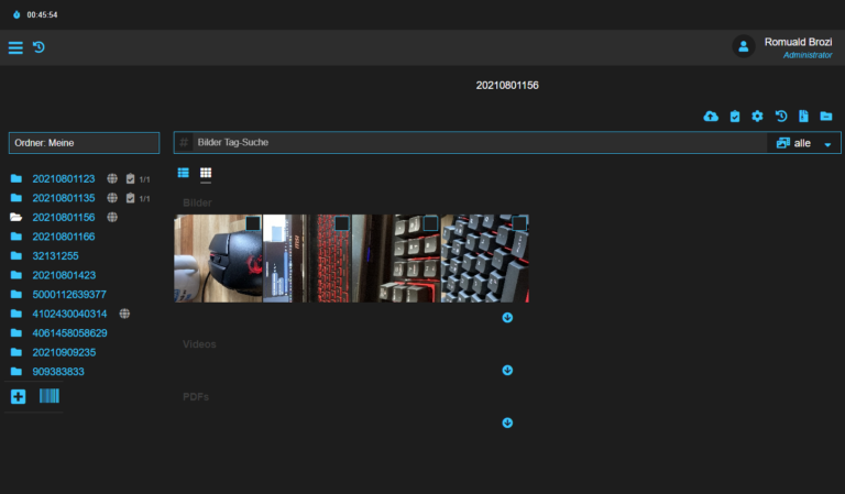 Wenn ein Barcode erkannt wird, wird der Ordner angelegt und in der Übersicht angezeigt.