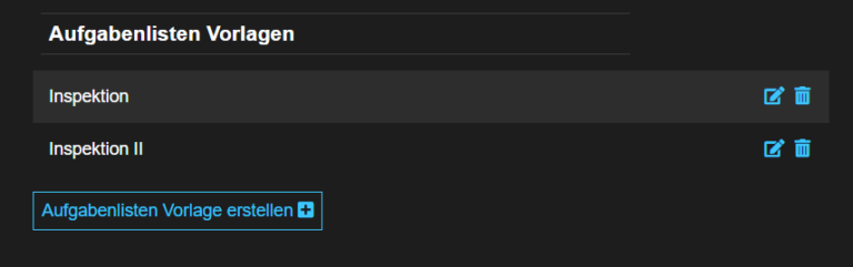 Neben dem „Namen“ der Vorlage kannst du die einzelnen Aufgaben in der Liste erfassen. In der Auftragsverwaltung kannst du diese Vorlage verwenden.